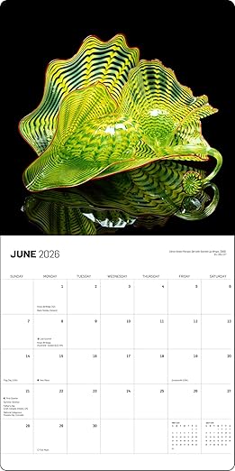 This 12-month wall calendar features 14 striking works by internationally renowned artist Dale Chihuly.