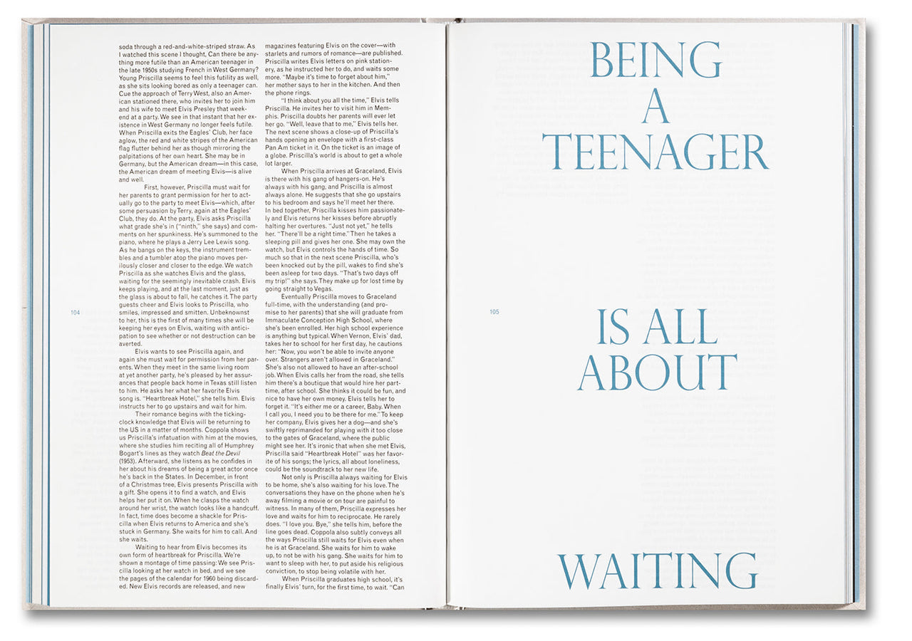 Book 015 in the A24 Screenplay Collection includes an introduction by Rashida Jones, an essay by Vendela Vida, on-set photography by Sofia Coppola, an excerpt from Elvis and Me by Priscilla Presley, and Polaroids by Sabrina Lantos.