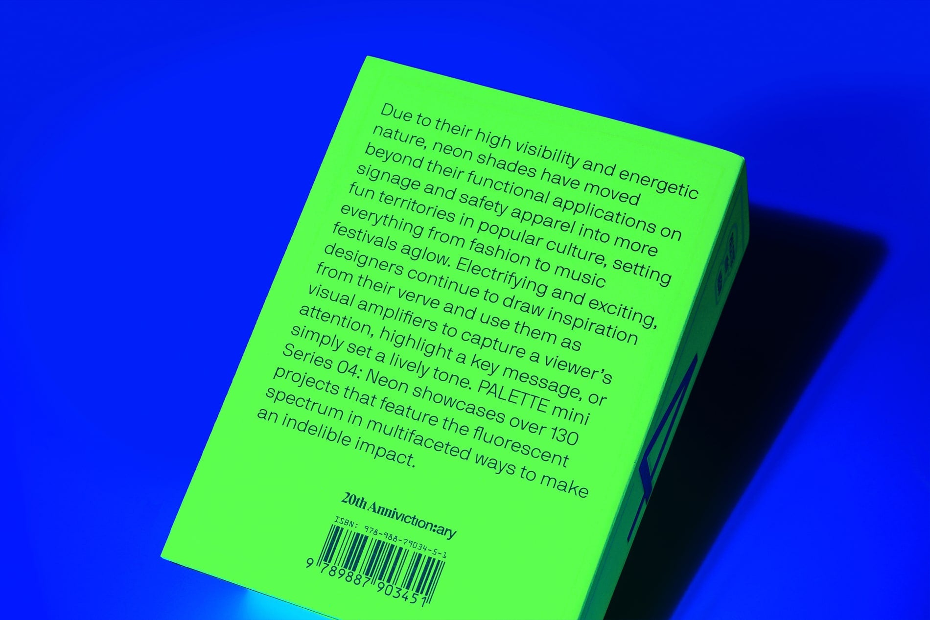 PALETTE mini 04: Neon comes after the first 3 titles (Black & White, Multicolour, Gold & Silver) with a dazzling collection of projects featuring clever uses of fluorescent hues. Showcasing spot colours, phosphorescent inks, and interesting printing techniques, this electrifying edition highlights the creative ways with which designers are setting visual culture aglow. It will also feature a glow-in-the-dark cover and 6 fluoro-ink printing for its pages.